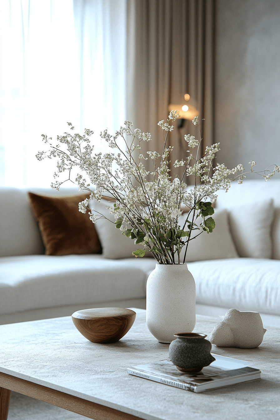 Minimalist coffee table decor ideas focus on clarity, balance, and intentional styling to keep the space feeling open and refreshed. Clean lines and soft neutrals allow each piece to stand out without visual clutter. A single sculptural object or understated textile adds quiet sophistication. This approach enhances the room without overpowering it. The result feels calm and curated.